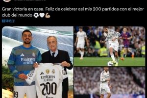 他也在赛后通过社媒晒出比赛照并配文:“在主场取得重要胜利!很高兴能为世界最佳俱乐部出战第200场比赛。”